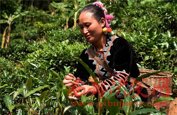 這是云南省瀾滄拉祜族自治縣酒井鄉(xiāng)老達(dá)保寨的拉祜族婦女李娜丕在采摘茶葉(2016年9月23日攝)。