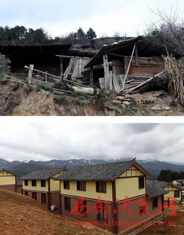這是云南省維西傈僳族自治縣永春鄉(xiāng)慶福村傈僳族群眾的舊居和易地扶貧搬遷新居(拼版照片,3月29日攝)。