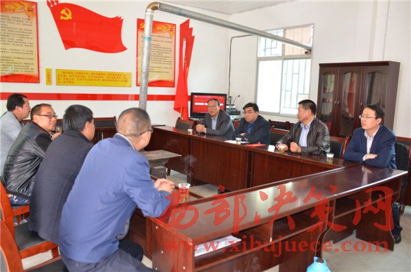 集團(tuán)公司董事長(zhǎng)張斌成(右三)深入孔雀臺(tái)村指導(dǎo)脫貧工作