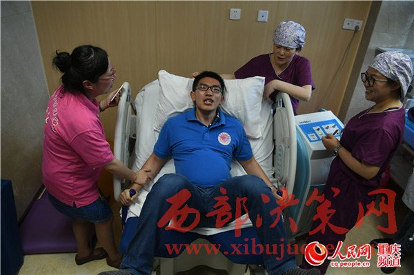 重慶:準(zhǔn)爸爸體驗(yàn)“分娩痛”表情痛苦大呼受不了