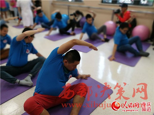 準(zhǔn)爸爸們體驗(yàn)孕婦瑜伽,幾分鐘后,不少人累得氣喘吁吁。