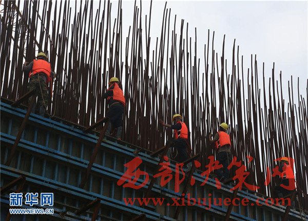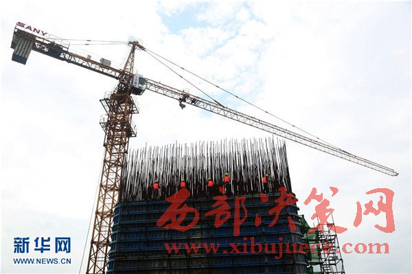 5月22日,中國鐵建二十二局的工人在蒙華鐵路贛江特大橋施工。