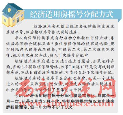 經(jīng)濟適用房機選,有兩次“5選1”機會;公租房人房對應,最終達到每月一次