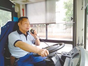 “以前報站經(jīng)常是扯著嗓子喊,每天嗓子都要‘冒煙’。現(xiàn)在有公交車自動播報系統(tǒng),我就拿著話筒喊。”劉師傅說,他現(xiàn)在每天開車跑3趟,每趟至少要喝一個8磅水壺裝的水,至少上一次廁所。