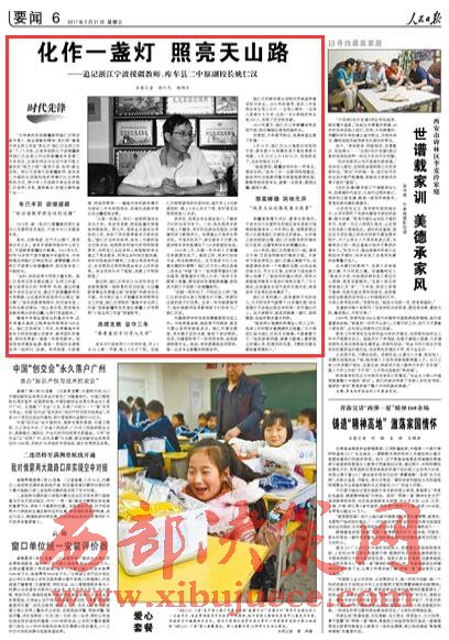 “當時,學校經(jīng)常為師資力量發(fā)愁。姚仁漢老師過來后提出建立‘名師工作室’,建立起常態(tài)化的‘傳幫帶’機制,通過和鎮(zhèn)海中學的互動交往,通過寧波援疆教師的示范幫教,讓這里的年輕老師可以接過‘接力棒’。”庫車縣教育局局長、時任庫車縣二中校長郭志清說,“他以身示范,把沿海先進教學理念送到邊疆,讓我們受益匪淺。”