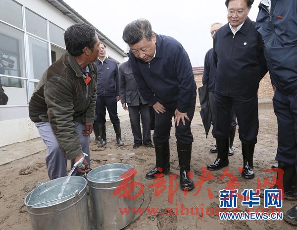 2016年8月22日至24日,中共中央總書記、國家主席、中央軍委主席習(xí)近平在青海調(diào)研考察。這是8月23日上午,習(xí)近平在海東市互助土族自治縣五十鎮(zhèn)班彥村村民呂有章的新家了解自來水使用情況。 (記者 蘭紅光 攝)