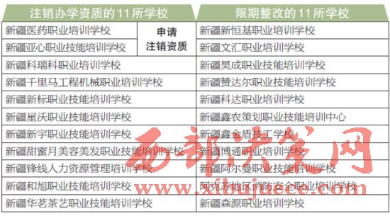 11所新疆維吾爾自治區(qū)本級民辦職業(yè)培訓學校被注銷資質(zhì)