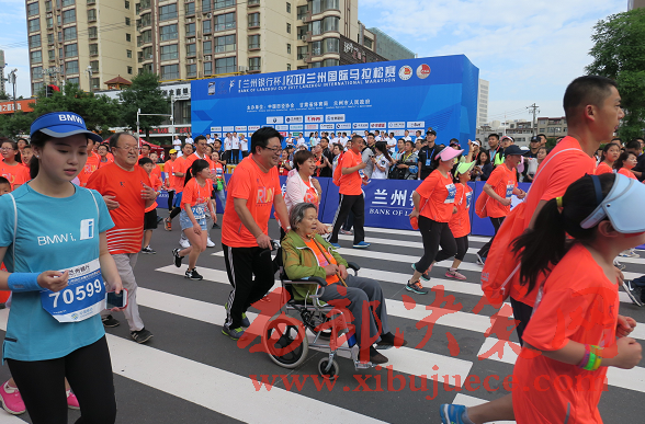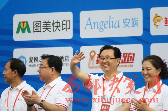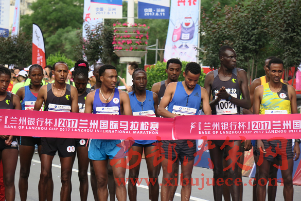 西部決策網(wǎng)-西部大開發(fā)訊(杜杰 帥華鋒)6月11日7時30分,隨著中國田徑協(xié)會主席段世杰,甘肅省委常委、蘭州市委書記李榮燦,甘肅省委常委、省委宣傳部部長陳青,甘肅省副省長郝遠,甘肅省體育局局長楊衛(wèi)的發(fā)令,2017蘭州國際馬拉松賽準時鳴槍開賽。來自中國、俄羅斯、美國、法國、德國、烏克蘭、肯尼亞、埃塞俄比亞等32個國家的40413名運動員沖過起跑線奮勇向前。