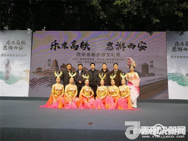 2017年12月13-17日,由西安市旅游發(fā)展委員會(huì)、西安曲江新區(qū)管理委員會(huì)主辦,西安曲江文化旅游股份有限公司承辦的“樂乘高鐵·惠游西安”西安5折歡游季西成高鐵系列路演活動(dòng),分別在廣元利州廣場(chǎng)、綿陽(yáng)鐵牛廣場(chǎng)、成都寬窄巷子?xùn)|廣場(chǎng)、重慶觀音橋廣場(chǎng)等地精彩上演。巡演向四川、重慶的父老鄉(xiāng)親們介紹了西安豐富的旅游資源,展現(xiàn)了千年古都地靈人杰的文化底蘊(yùn)和生氣盎然的城市魅力。四城路演活動(dòng)共吸引了近五萬(wàn)當(dāng)?shù)厥忻裼慰汀?