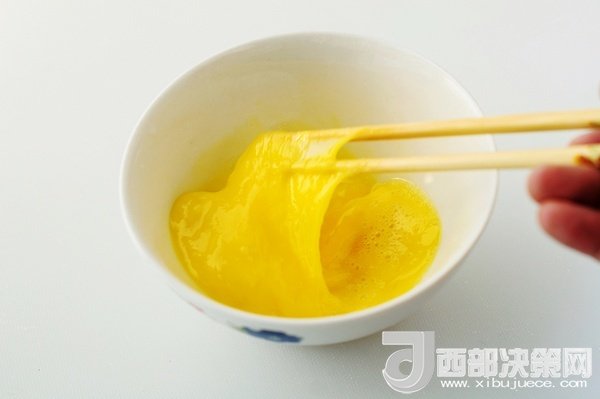 雞蛋攪打成均勻的蛋液。