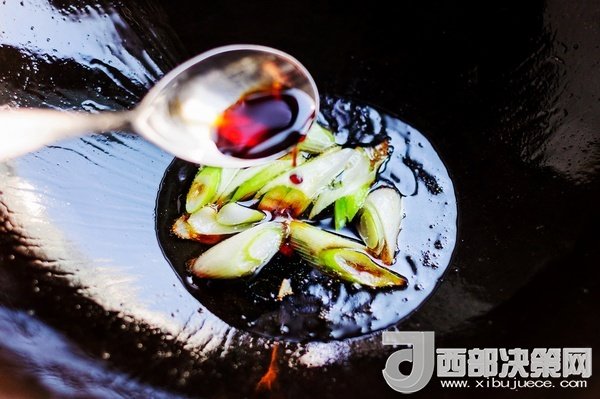 鍋里調(diào)進豉油,倒人少量清水大火炒成味汁。