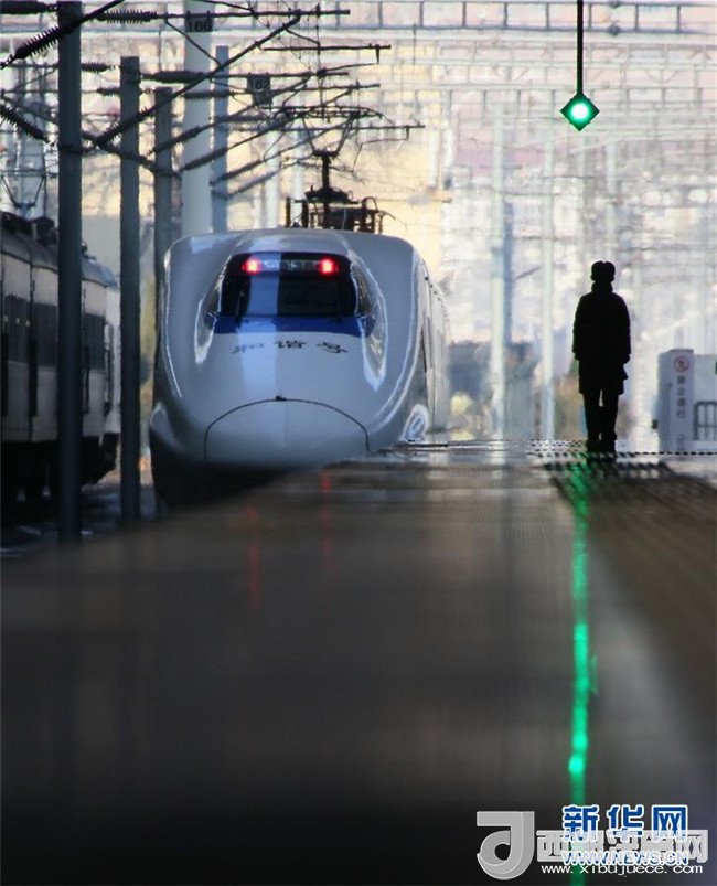 12月27日,一列動車組駛出山東煙臺火車站。從鐵路部門了解到,全國鐵路將于12月28日起實施新的列車運行圖。(唐克 攝)