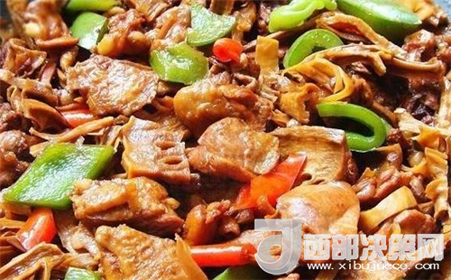 8、等筍干軟爛時,大火收汁,加青紅椒塊,最后加鹽調(diào)味。