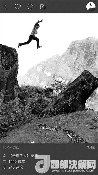 開通直播后,拉博問村里:“這個(gè)平臺(tái)是我修的,能不能用我的名字?”村里同意了,這個(gè)叫做“拉博站”的地方也成為了“懸崖村飛人”拉博直播的主要場(chǎng)景。拉博直播時(shí)蹦蹦跳跳,看的人覺得很危險(xiǎn),他自己不覺得,他說自己從小到大,這個(gè)懸崖村一直就是這樣的。“山上放羊怎么戴護(hù)具?。咳绻蚺艹鋈チ?,不管什么地形也得給抱回來。”