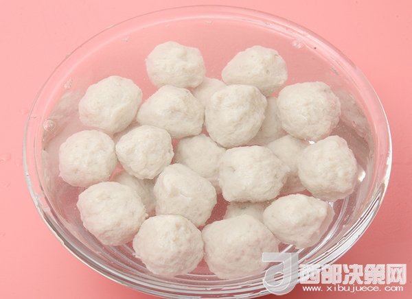 7、制作好的魚(yú)丸放入冷水中浸泡3-5分鐘再取出。