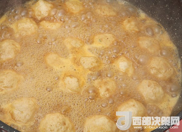 1、加入咖喱塊后,醬汁會(huì)稠稠的,可以沾著魚(yú)丸吃或者拌飯都很棒。