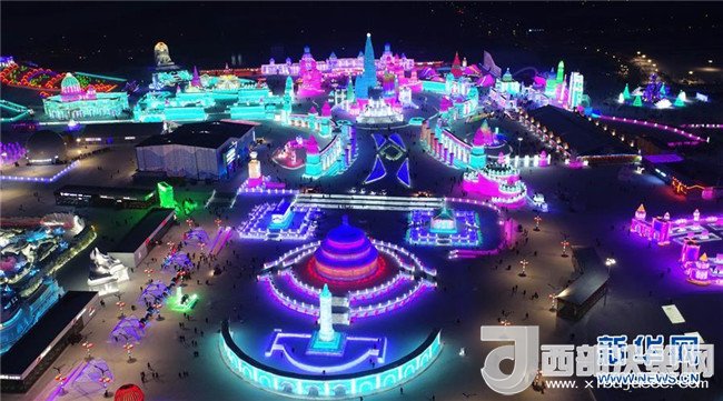 這是航拍的流光溢彩冰雪大世界園區(qū)(1月4日攝)。時(shí)下正值嚴(yán)冬,第十九屆哈爾濱冰雪大世界每天吸引著來(lái)自天南海北的眾多游客。夜幕初降,冰雪大世界園區(qū)流光溢彩、如夢(mèng)似幻,成為冰雪童話世界。本屆哈爾濱冰雪大世界占地80萬(wàn)平方米,用冰量18萬(wàn)立方米,用雪量15萬(wàn)立方米。