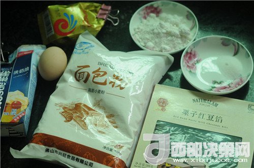 2.將液體材料放入面包機(jī)后,篩入粉類