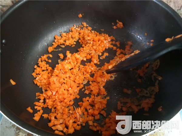 主料:米飯 1碗  咸蛋 2個(gè)  蝦皮 3克  胡蘿卜 80克  雞蛋 2個(gè)
