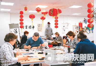 在比利時(shí)布魯塞爾的孔子學(xué)院,學(xué)員們練習(xí)中國(guó)書(shū)法。新華社記者葉平凡攝