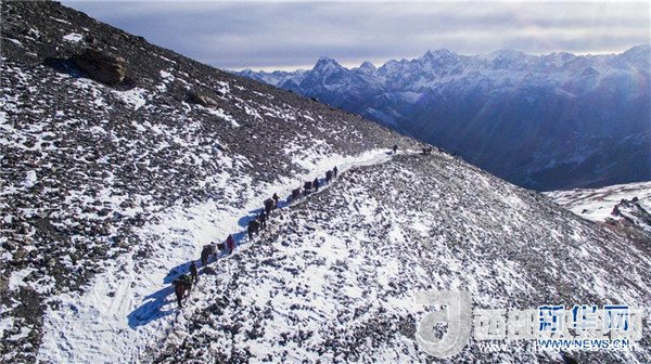 巡診隊沿著幾乎垂直的牧道翻越海拔4000多米的喬拉克達坂(2017年12月15日攝)。