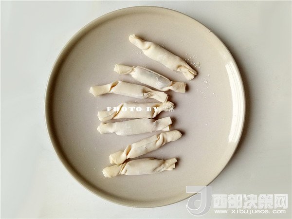 6.如圖所示,抄手皮蝦仁餡兩端稍稍壓實(shí);