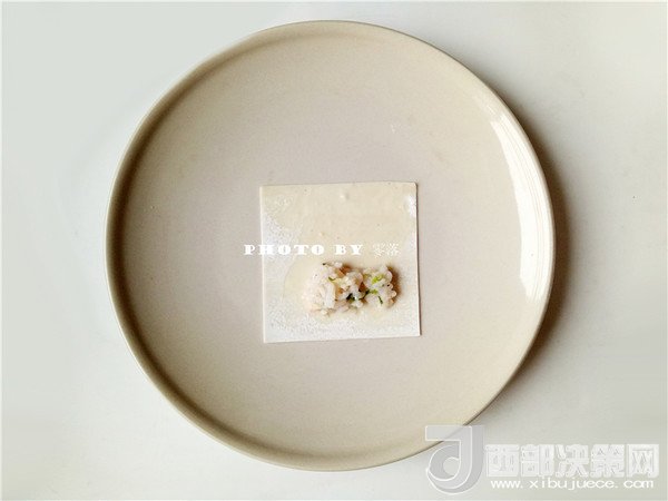 5.如圖所示,抄手皮卷起來,封口處可用適量清水或蛋清涂抹,便于粘連;