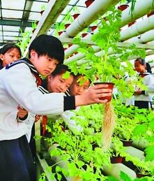 山東省濱州市博興縣第一小學(xué)的學(xué)生們在植物生態(tài)館里學(xué)知識(shí)。新華社發(fā)