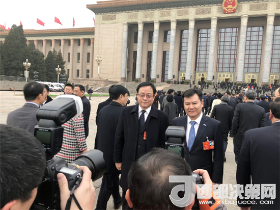 ?。▓D為全國人大代表張近東在十三屆全國人大一次會(huì)議上接受記者采訪)