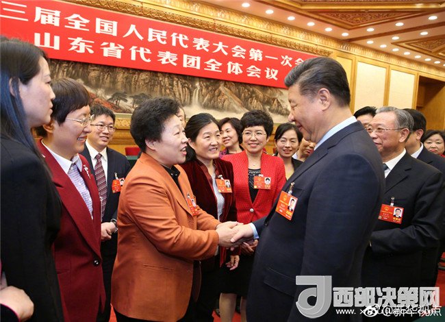 新華網北京3月8日電 8日上午,習近平到山東代表團參加審議。正值“三八”國際勞動婦女節(jié),習近平代表黨中央向女代表、女委員、女工作人員及全國各族各界婦女同胞,致以節(jié)日的祝賀和誠摯的祝福。