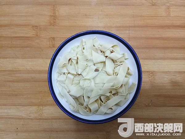 5.焯過(guò)水的千張撈出放入盤(pán)中(用稍微有些深度的容器最好)