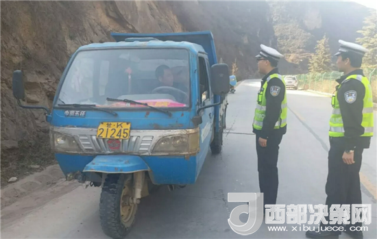 西部決策網(wǎng)——西部大開發(fā)訊(帥華鋒 通訊員 馬存福 施廣永)為進(jìn)一步加強(qiáng)農(nóng)村道路交通安全管理工作,營造良好的農(nóng)村道路交通安全環(huán)境,保障人民群眾生命財(cái)產(chǎn)安全,連日來,甘肅兩當(dāng)縣公安局交警大隊(duì)結(jié)合轄區(qū)實(shí)際,最大限度的將警力部署在路面一線,通過隱患排查、路面管控和宣傳教育,嚴(yán)查各類交通違法行為,有效預(yù)防了農(nóng)村道路交通事故的發(fā)生。