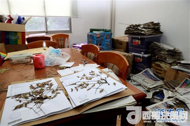在復(fù)旦大學(xué)鐘揚(yáng)的工作間里,大量報紙中夾存著他和團(tuán)隊從各地采集的待整理植物標(biāo)本(2018年1月24日攝)。新華社記者 劉穎 攝