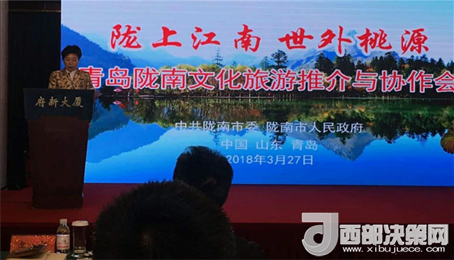 3月27日,在青島市府新大廈舉辦了青島隴南文化旅游推介與協(xié)作會,隴南市人大常委會主任、市委秘書長岳金林、隴南市政協(xié)主席張昉、隴南市委常委、常務(wù)副市長張慶宏、隴南市委常委、宣傳部部長李興華、隴南市副市長徐世林、隴南市政府黨組成員、市委副秘書長、市政府副秘書長殷世逸、隴南市政府黨組成員、市政府副秘書長苑曉輝、隴南市委宣傳部副部長、精神文明辦主任周立鈞、隴南市文廣新局局長汪小娟、隴南市旅游局局長毛樹林及市旅游開發(fā)領(lǐng)導(dǎo)小組考察團(tuán)參加人員,各縣(區(qū))旅游局負(fù)責(zé)人,重點旅游景區(qū)、重點旅行社負(fù)責(zé)人參加會議。會議由隴南市副市長徐世林主持。