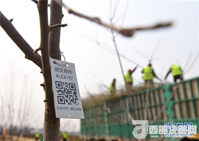 這是河北雄安新區(qū)“千年秀林”栽植苗木上的二維碼(3月21日攝)。新華社記者 牟宇 攝