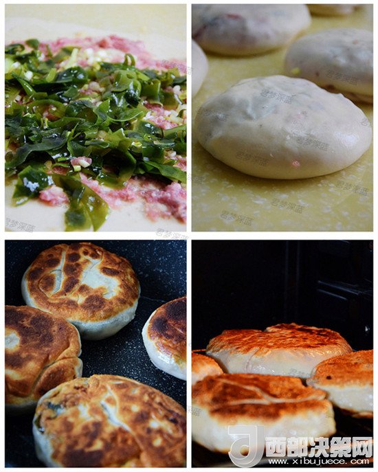 這款餅純屬亂搭型的,原來只是想自己練練手藝做個爬蝦醬味道的肉末餅,打開冰箱的時候發(fā)現(xiàn)有之前剩的新鮮裙帶菜,于是靈機(jī)一想,把裙帶菜也加入餅中,這樣讓這款餅更健康。