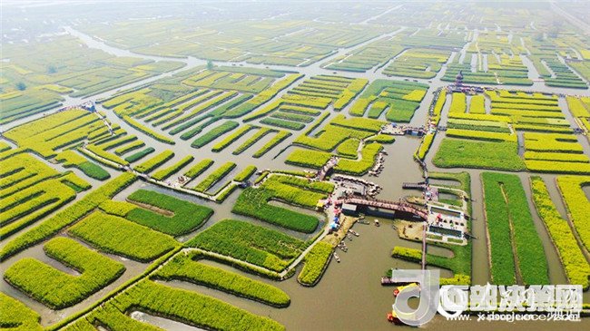 泰州興化的油菜花,以千島樣式形成的垛田景觀享譽(yù)全國。傳說垛田是當(dāng)年泰州知州岳飛大戰(zhàn)金兵擺設(shè)的八卦陣,每當(dāng)清明前后,油菜花開,藍(lán)天、碧水、“金島”織就了“河有萬灣多碧水,田無一垛不黃花”的奇麗畫卷,吸引了眾多海內(nèi)外游客前來觀光。(耿志超)