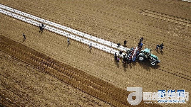 在新疆庫車縣牙哈鎮(zhèn)的一處棉田,“智能拖拉機”在進行播種作業(yè)(3月23日無人機拍攝)。國家統(tǒng)計局4月17日發(fā)布數據,初步核算,一季度國內生產總值198783億元,按可比價格計算,同比增長6.8%。 新華社記者 胡虎虎 攝