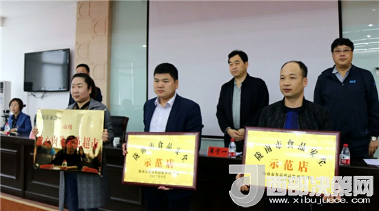 會上,席寧一宣讀了《隴南市食藥監(jiān)局關于命名2017年市級食品安全示范街示范店和示范學校食堂的通知》;李寶成宣讀了《隴南市食藥監(jiān)局關于命名2017年市級放心肉菜示范超市的通知》;為獲得全市2017年度食品安全示范店、農(nóng)產(chǎn)品示范超市的兩當縣開元超市(農(nóng)貿(mào)市場店)、兩當縣秦南農(nóng)產(chǎn)品電商體驗中心、兩當縣川渝九品火鍋店頒發(fā)了獎牌;城關鎮(zhèn)、金洞鄉(xiāng)、農(nóng)牧局、教育局分別作了交流發(fā)言;縣食安辦主任、食藥局長彭小蘭作了工作報告;與各鄉(xiāng)鎮(zhèn)、工作站、食安委各成員單位簽訂了《2018年兩當縣食品藥品安全目標管理責任書》。
