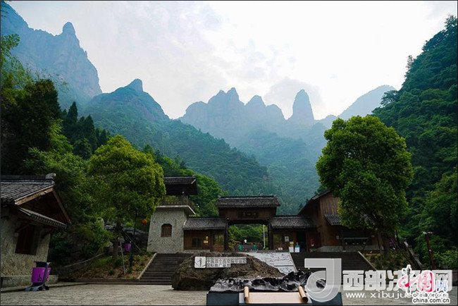 景區(qū)南北兩側(cè),為江南峽谷風(fēng)光,林泉相依,以巖奇、瀑雄、谷幽、洞密、水清、霧美取勝,千峰林立,氣象恢弘。自北海索道上至南海索道下,數(shù)公里的旅程均在數(shù)百米的高空棧道上行進(jìn)。其間依次行走在菩提道、般若道、因緣道、觀音道、飛鷹道與無(wú)為道這六條道上。