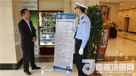 西部決策網(wǎng)——西部大開(kāi)發(fā)訊(帥華鋒 通訊員 馬存福 漆小燕)酒后駕車(chē)害人深,酒前宣傳可預(yù)防。為進(jìn)一步倡導(dǎo)文明、安全行車(chē),培養(yǎng)駕駛?cè)肆己玫鸟{駛習(xí)慣,最大限度的預(yù)防和減少酒后駕駛交通違法行為,營(yíng)造“拒絕酒后駕駛”濃厚的宣傳氛圍。近日,甘肅天水公安交警部門(mén)結(jié)合全省正在開(kāi)展的“三反一查”綜合治理以及“七個(gè)一律”工作安排,在轄區(qū)酒店、賓館投放“拒絕酒駕”宣傳立式海報(bào)、溫馨提示卡,將酒駕的危害、法律法規(guī)宣傳前移到了就餐前,讓市民在餐桌上筑起一道法律安全防線。