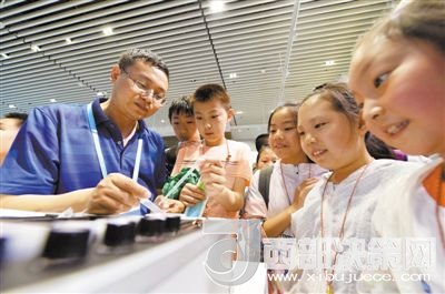 圖為2018年全國科技活動周暨北京科技周活動主場,國家納米科學中心任紅軒教授為來自張家口的學生展示“納米夢工坊”便攜納米科普教具,讓學生感受納米科技魅力。洪星 攝