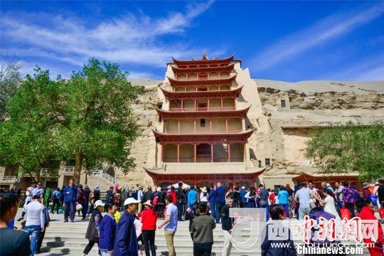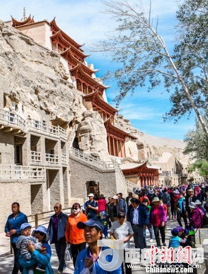圖為民眾在莫高窟參觀。 王斌銀 攝