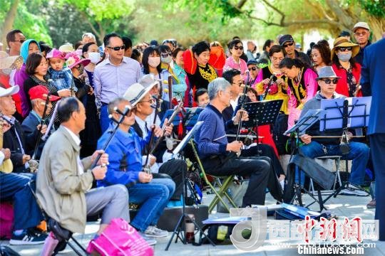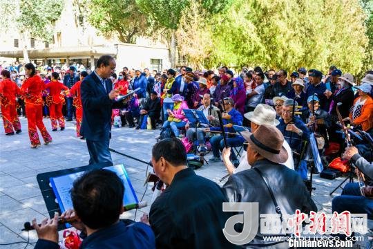 圖為敦煌市沙州樂園民族歌舞團(tuán)在莫高窟前表演敦煌民間戲曲。 王斌銀 攝