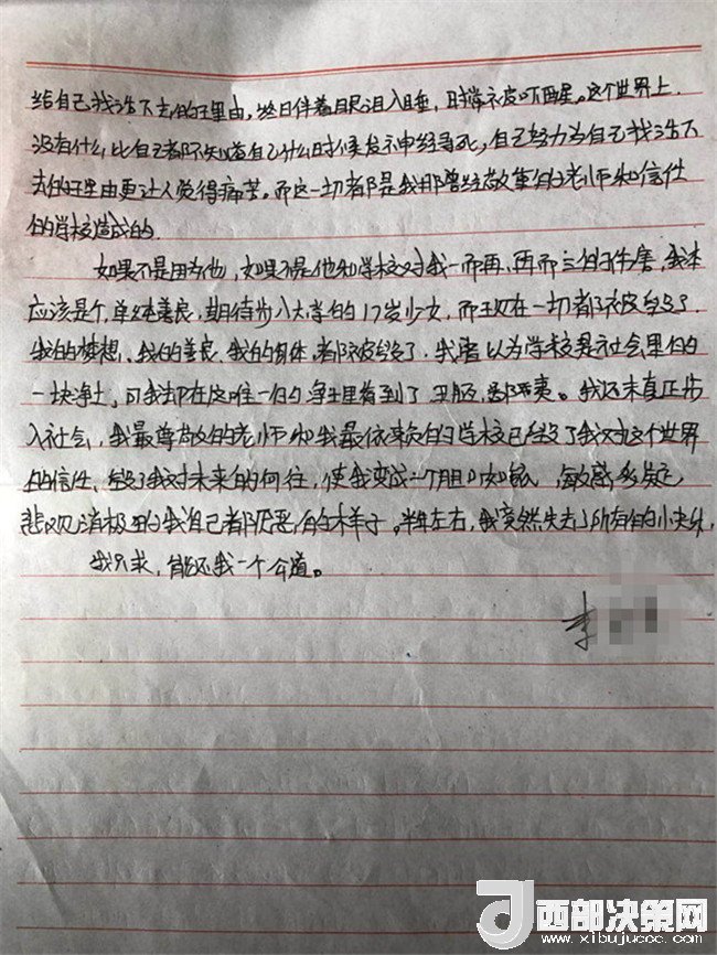 在李某奕覺得,自己并未做錯(cuò)什么,學(xué)校寧要讓她轉(zhuǎn)校也不調(diào)換一名老師,這對(duì)她來(lái)講不公平。從此她開始焦慮、煩躁、夜不能寐,一直靠安眠藥睡眠,以至后來(lái)不能正常上課。她一直想要一個(gè)公道,直至她跳樓自殺也未能如愿。