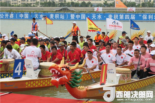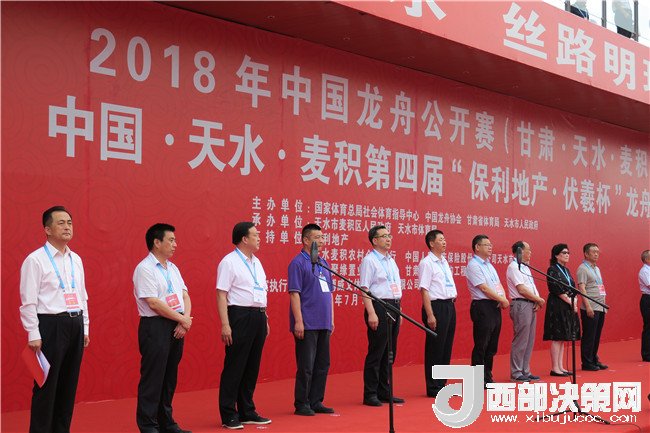 9時(shí)整,2018中國龍舟公開賽(天水麥積站)暨保利地產(chǎn)“伏羲杯”第四季龍舟大賽正式拉開序幕,來自全國及甘肅省的近25家代表隊(duì)展開激烈角逐。中國龍舟協(xié)會(huì)副主席劉北劍,天水市人大常委會(huì)主任、市委秘書長蔣曉強(qiáng),天水市人大常委會(huì)原主任、市關(guān)工委主任李世榮,市委常委、常務(wù)副市長趙四輩,市委常委、宣傳部部長張建杰,市人大常委會(huì)副主任張克強(qiáng),副市長、市公安局局長馬瑛,市政協(xié)副主席屈光平,市政協(xié)副主席、麥積區(qū)委書記張智明,國家體育總局社會(huì)體育指導(dǎo)中心二部主任、國際龍舟協(xié)會(huì)副秘書長、亞洲和中國龍舟協(xié)會(huì)秘書長余漢橋,省體育局群眾體育處處長武志峰,市人大常委會(huì)秘書長楊坤,市政府副秘書長、外事僑務(wù)辦主任張有信,麥積區(qū)人大常委會(huì)主任賈應(yīng)珍等出席開幕式,并為龍舟點(diǎn)睛。