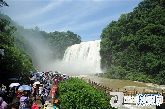 游客在安順市黃果樹(shù)瀑布景區(qū)游覽(6月5日攝)。