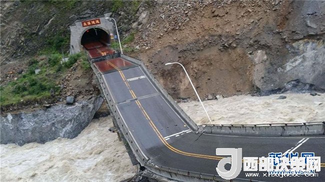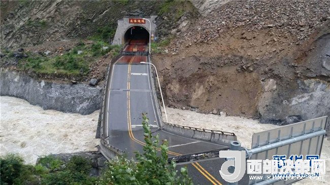 暴雨致四川茂縣國道213線一處橋梁垮塌