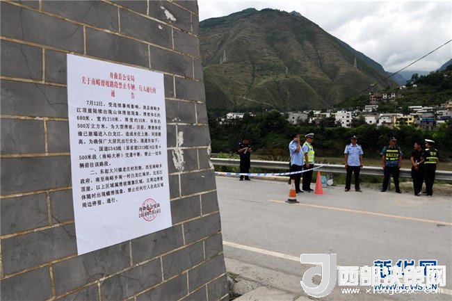 7月15日,在舟曲縣南峪鄉(xiāng),通往險情點(diǎn)的道路被臨時交通管制。