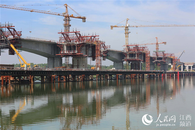 7月17日電17日上午,廣吉高速公路江西泰和北贛江特大橋正在進(jìn)行掛籃施工作業(yè),在藍(lán)天白云、綠水青山襯托下,顯得格外美麗壯觀(guān)。泰和北贛江特大橋位于江西省泰和縣萬(wàn)合鎮(zhèn),是廣吉高速公路唯一一座特大橋,是全線(xiàn)控制性工程,大橋總長(zhǎng)1075米,總投資近1.5億元。大橋自2016年11月開(kāi)工建設(shè)以來(lái),工程進(jìn)展順利,預(yù)計(jì)于今年底前建成合龍,為廣吉高速2019年1月如期建成通車(chē)奠定基礎(chǔ)。